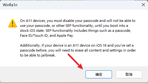 特别备注:如果是 A11系列设备(比如:iPhone X)且系统为 IOS16,如果之前有设置过密码,需要先抹掉所有内容和设置(请备份好重要数据!!!)才能使用 palera1n 进行越狱。